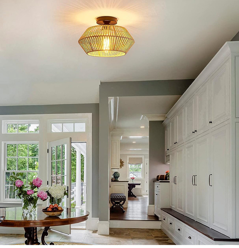 Jute Woven Ceiling Lamp - Hexagonal Design