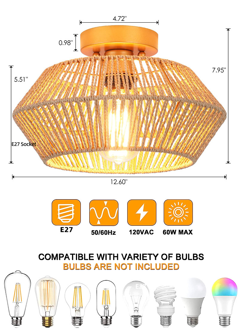 Estilo versátil: La combinación del yute y la base dorada se adapta a decoraciones modernas, bohemias o escandinavas.